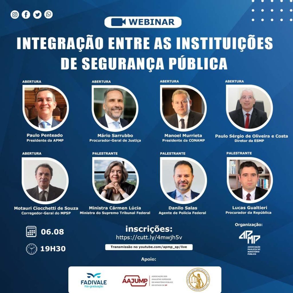 O SINPEF-MG convida os colegas sindicalizados a participarem do evento WEBINAR: Diálogos interinstitucionais: Integração entre as instituições de Segurança Pública, que será realizado no dia 06/08/2021, às 19h30 min e que, dentre outras autoridades, contará com a participação do Agente de Policia Federal, Me. Danilo Salas.