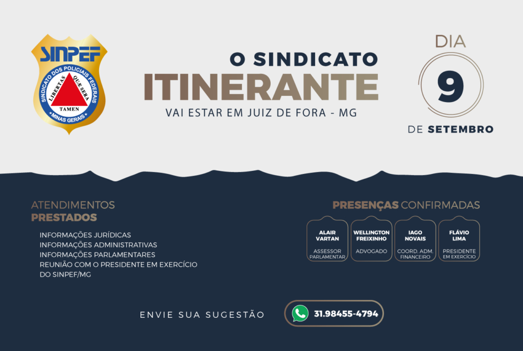 Amanhã, dia 9 de setembro às 15h, o Sindicato Itinerante estará em Juiz de Fora.