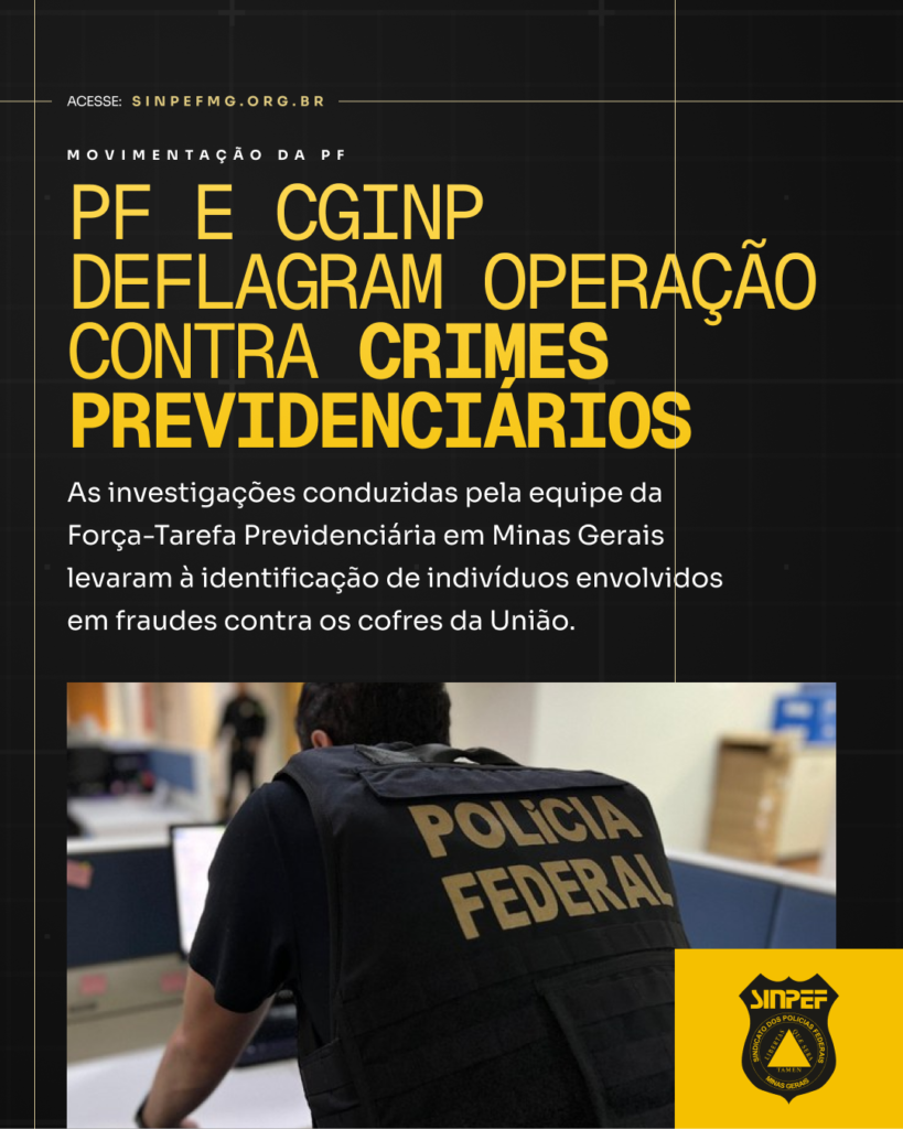 A Polícia Federal deflagrou, nesta quarta-feira (26/11), a Operação Múltiplas Faces, em ação conjunta com a Coordenação-Geral de Inteligência da Previdência Social (CGINP), do Ministério da Previdência Social. As investigações conduzidas pela equipe da Força-Tarefa Previdenciária em Minas Gerais levaram à identificação de indivíduos envolvidos em fraudes contra os cofres da União.