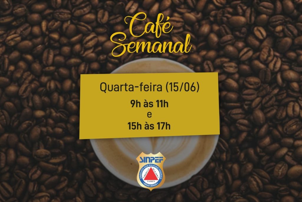 Devido ao feriado quinta-feira, o Café Semanal será amanhã (15/06) nos dois horários: 9h às 11h e das 15h às 17h. Esperamos todos os sindicalizados aqui na sede do SINPEF/MG.